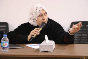 وقد تم إلقاء هذا المحور من قبل الأستاذة عزيزة اليوسف، حيث تم التطرق إلى التحديات المستمرة التي تواجه المرأة في المجتمع السوري وكيف يمكن للنساء كسر الصمت الذي يحيط بالعنف الممارس ضدهن.